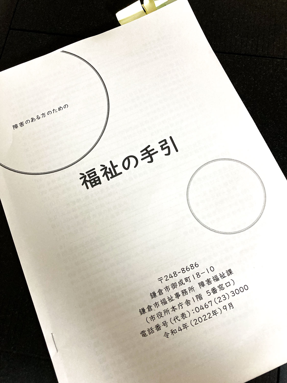 【福祉の手引】は障害者手帳を取ると窓口でくれる冊子です。受けられる支援や申請方法、関係機関一覧がまとまっていて、もっと前に見ておくべきだと思いました。